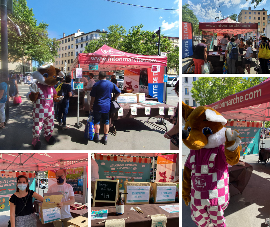 Le mois de juin fut rythmé par l'opération "Les marchés s'attaquent aux déchets", organisée sur plusieurs marchés de la région Auvergne-Rhône-Alpes. M ton Marché a imaginé pour la première année cette opération pour la Ville de Lyon, la commune de Millery et la Ville de Neuville-sur-Saône. L'objectif était de valoriser les marchés qui s'inscrivent ou souhaitent s'inscrire dans une logique de durabilité, d'écoresponsabilité et ainsi mettre à l'honneur la proximité et la saisonnalité des produits. Cette opération a également permis de sensibiliser le grand public aux alternatives zéro déchet, grâce aux associations Zéro Déchet Lyon et AREMACS.