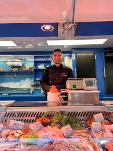 Poissonnier depuis 12 ans, Loïc est apprécié pour son professionnalisme et sa bonne humeur. Il aime particulièrement préparer le dos de cabillaud ou travailler le thon, des produits qu’il trouve agréables à transformer. Sur les marchés, il recherche avant tout la convivialité, autant avec ses clients qu’avec les autres commerçants.